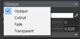 - Opaque : 기본값, 불투명한 오브젝트에 사용